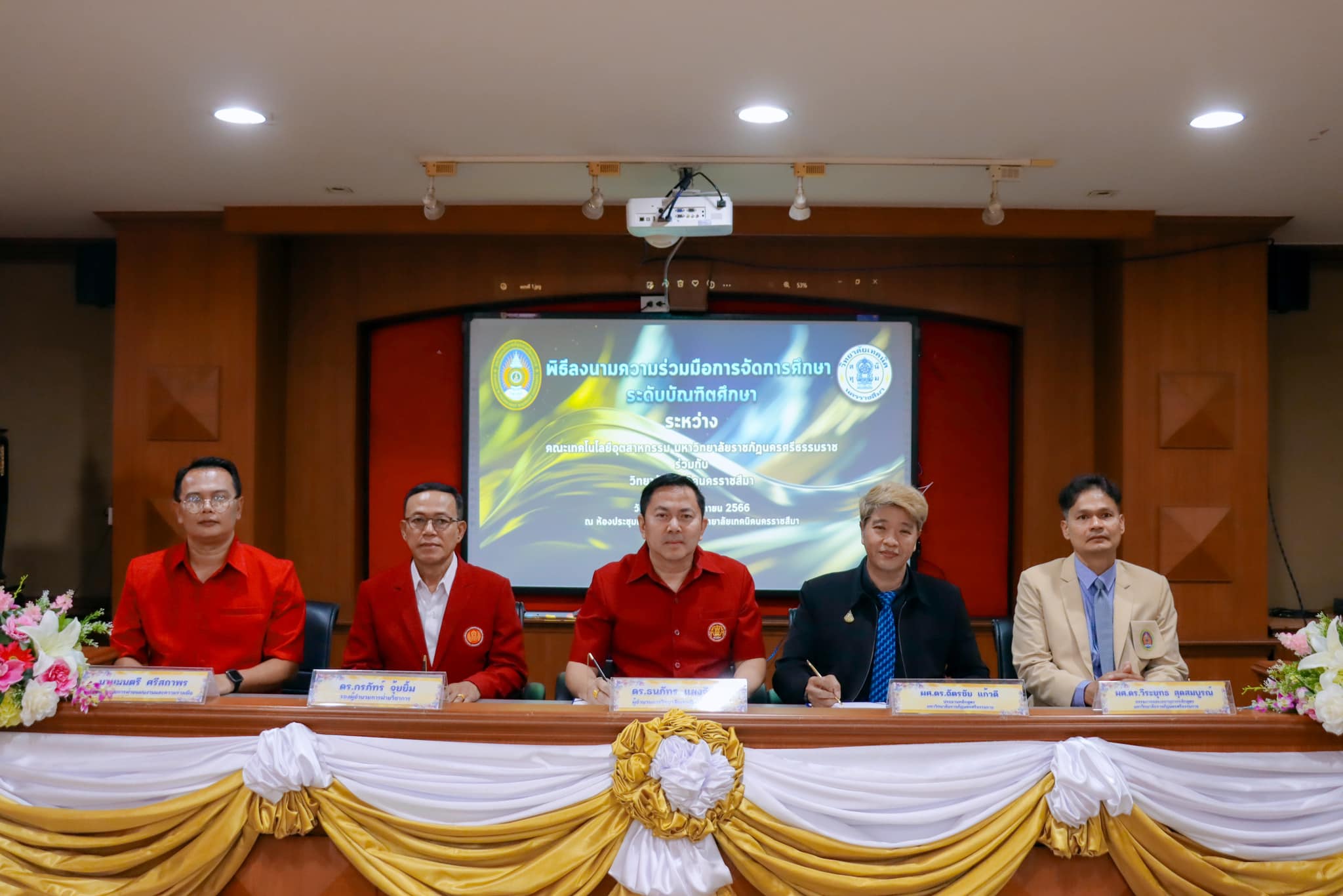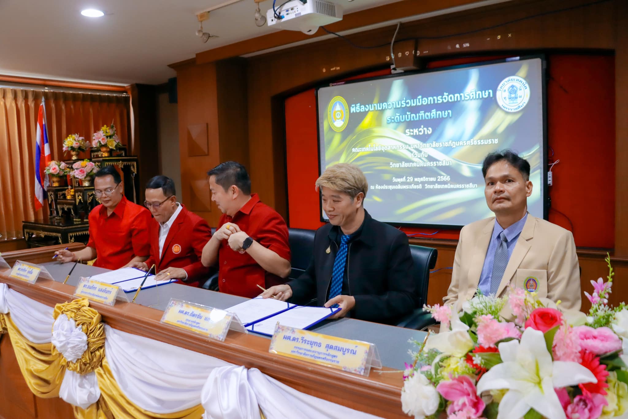 พิธีลงนามบันทึกข้อตกลงความเข้าใจ (MOU) ความร่วมมือการจัดการศึกษาระดับบัณฑิตศึกษา ระหว่างคณะเทคโนโลยีอุตสาหกรรม มหาวิทยาลัยราชภัฏนครศรีธรรมราช กับ วิทยาลัยเทคนิคนครราชสีมา