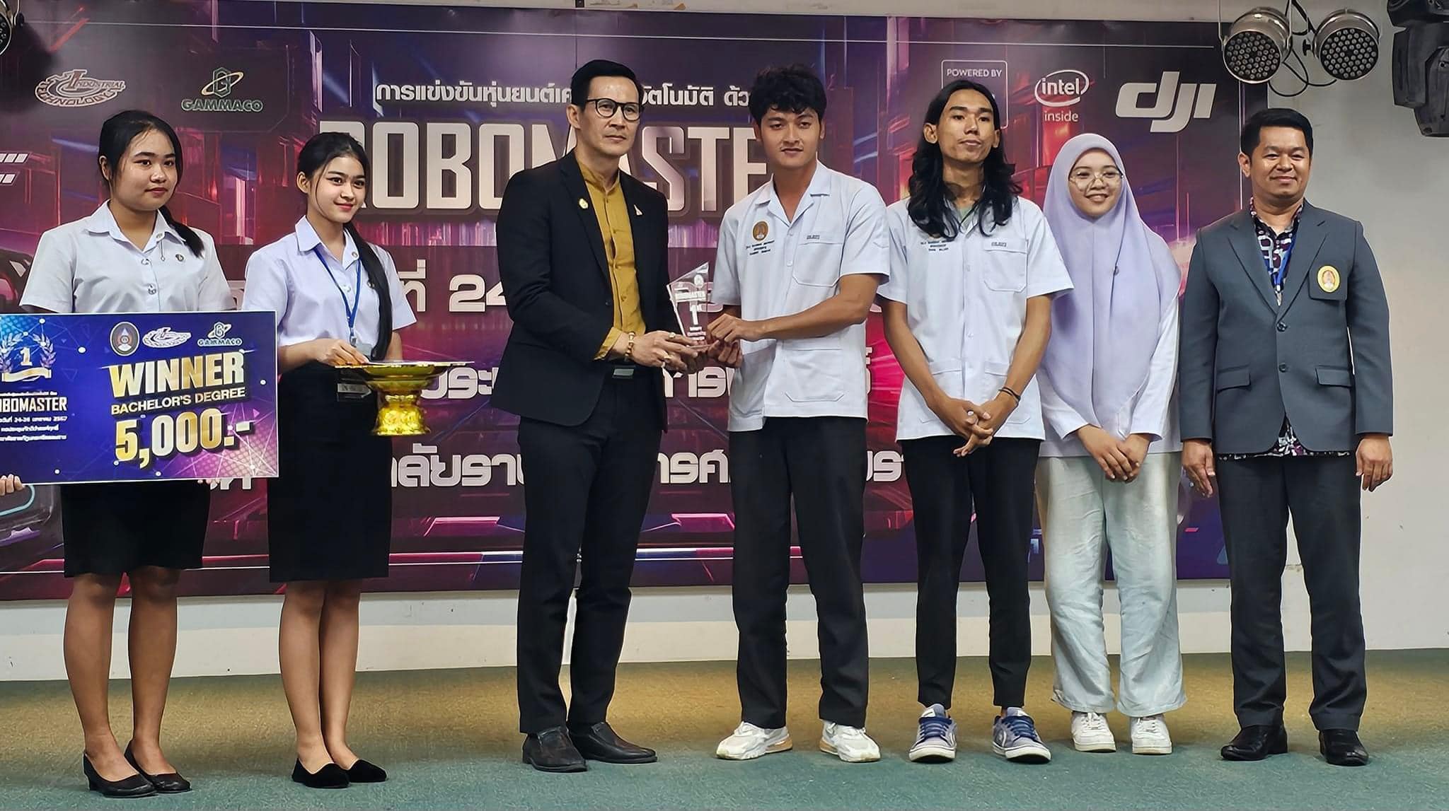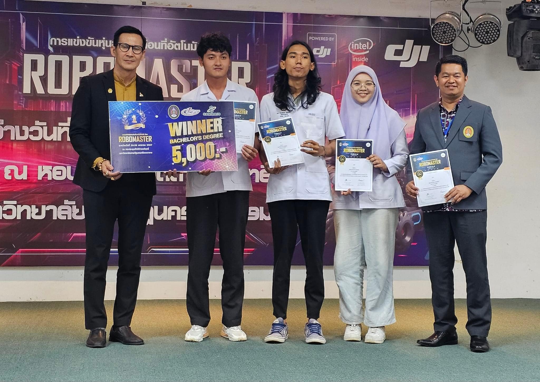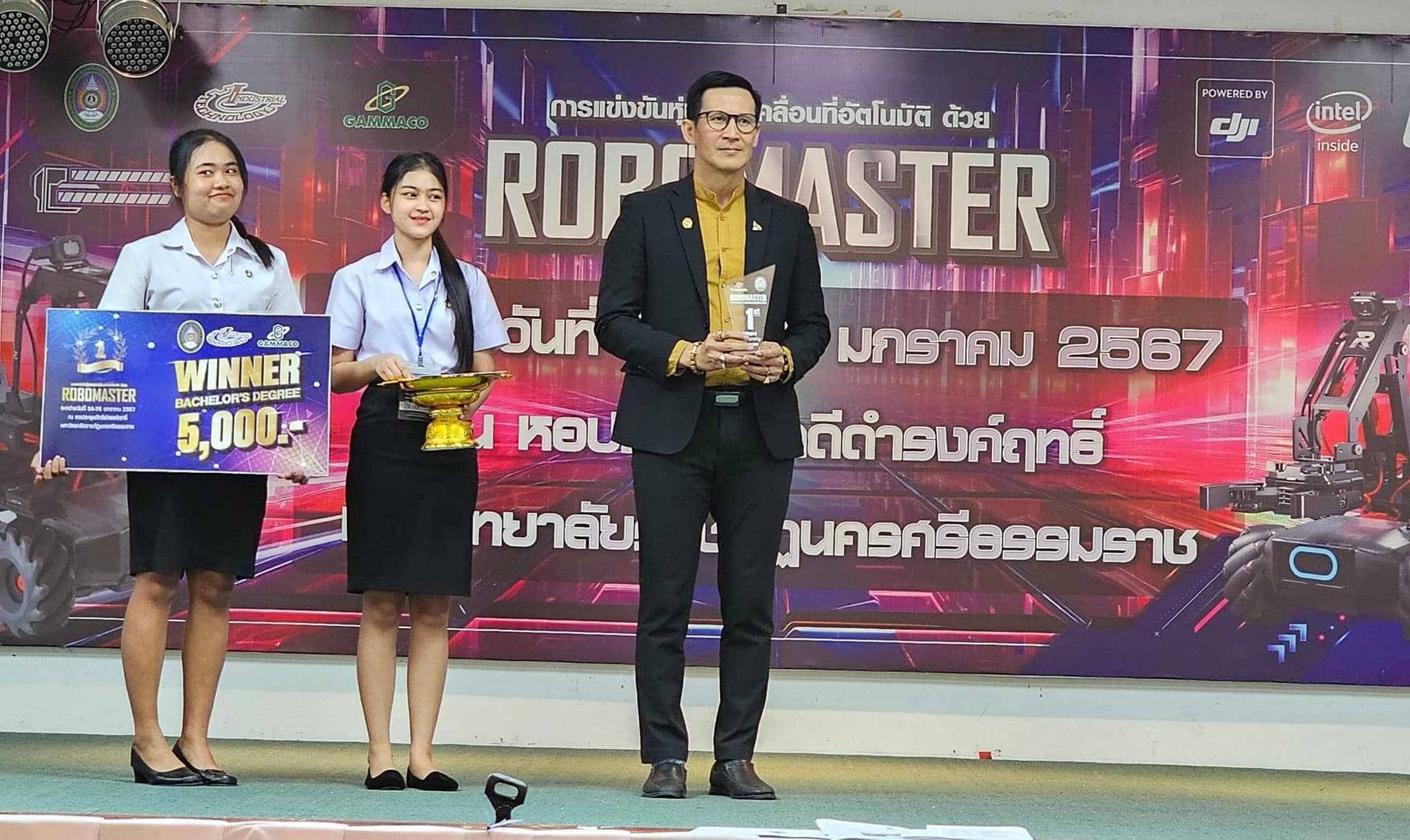 คณบดี ดร.อภิศันย์ ศิริพันธ์ มอบรางวัลผู้ชนะการแข่งขันหุ่นยนต์เคลื่อนที่อัตโนมัติด้วย RoboMaster ณ หอประชุมภักดีดำรงฤทธิ์ ชั้น 1 มหาวิทยาลัยราชภัฎนครศรีธรรมราช
