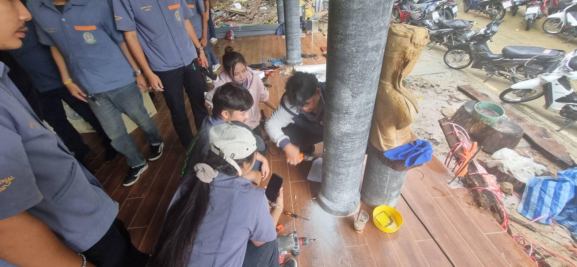 คณาจารย์และนักศึกษาร่วมกิจกรรมติดตั้งอุปกรณ์และระบบไฟฟ้าสำหรับอาคารปฏิบัติธรรมหลังใหม่” ณ สำนักปฏิบัติธรรมเขามหาชัย