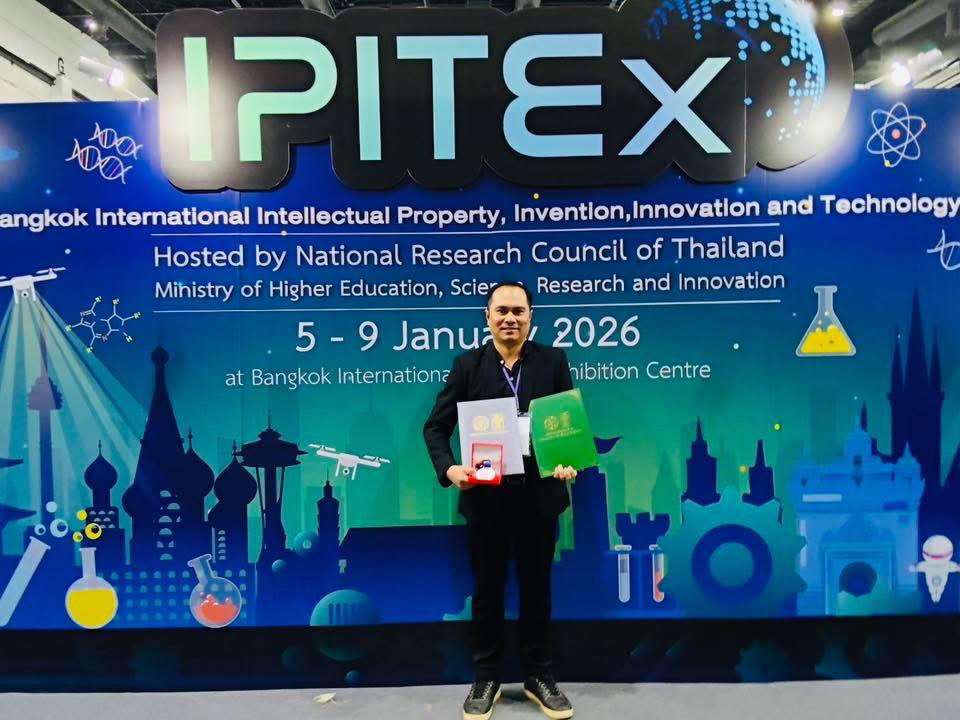 ได้รับรางวัลระดับเหรียญเงิน จากงานมหกรรมสิ่งประดิษฐ์และนวัตกรรมนานาชาติ “2026 Bangkok International Intellectual Property, Invention, Innovation and Technology Exposition (IPITEx 2026)” ซึ่งจัดขึ้นภายในงาน วันนักประดิษฐ์ ประจำปี 2569 (Thailand Inventors’ Day 2026)