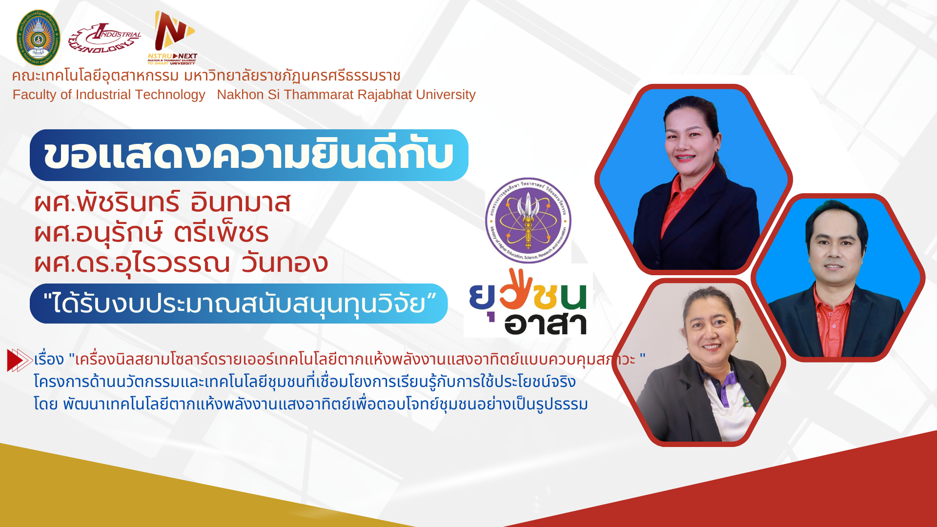 โดย พัฒนาเทคโนโลยีตากแห้งพลังงานแสงอาทิตย์เพื่อตอบโจทย์ชุมชนอย่างเป็นรูปธรรม