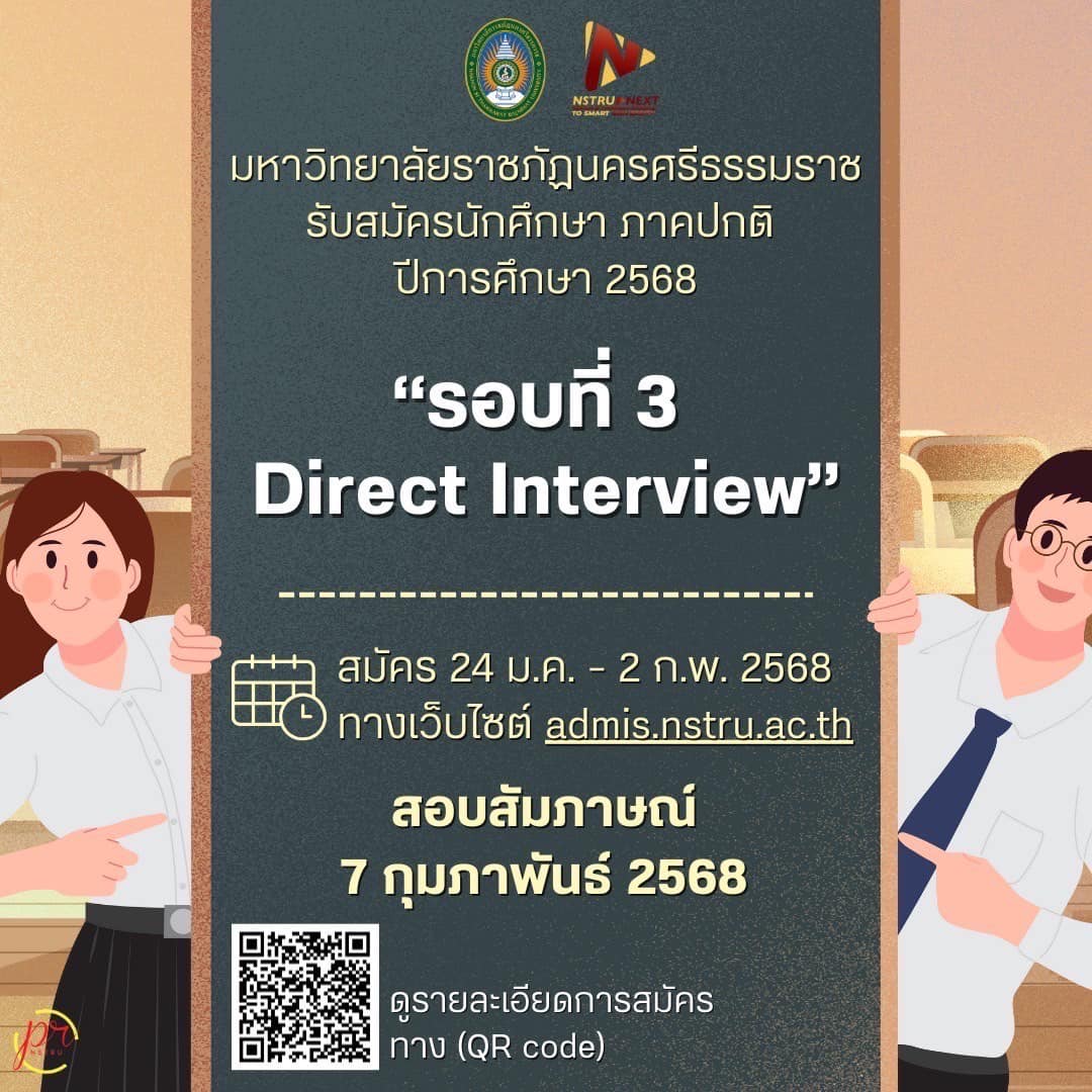 รับสมัครนักศึกษา ภาคปกติ ปีการศึกษา 2568 รอบที่3 Direct Interview สอบสัมภาษณ์อย่างเดียว